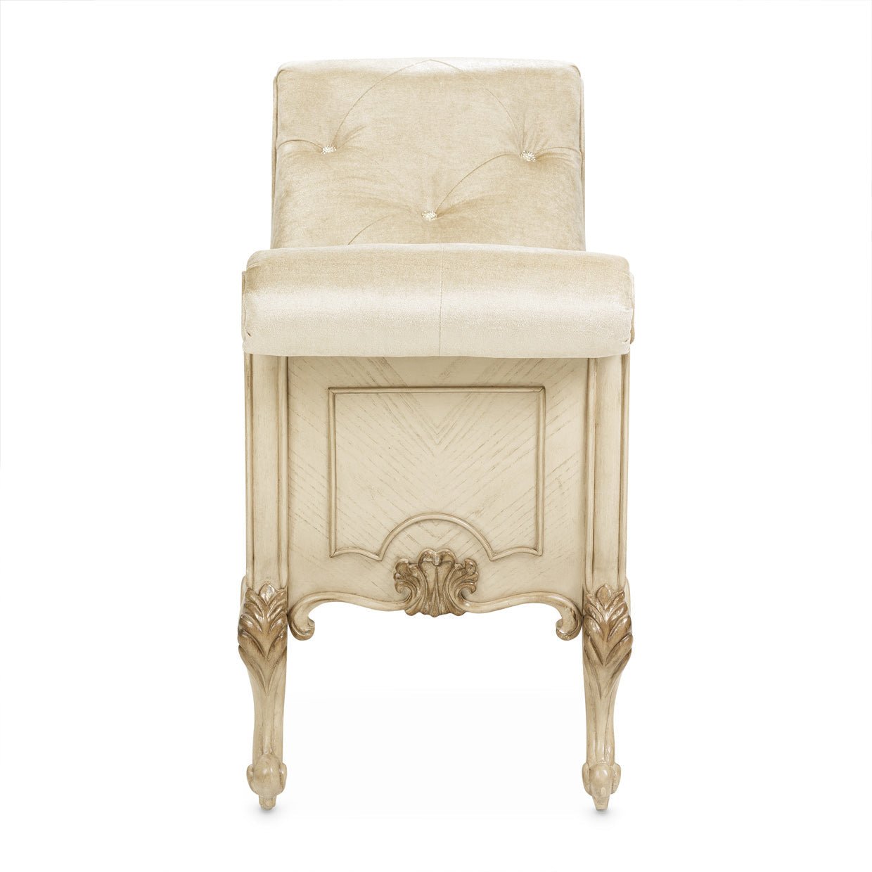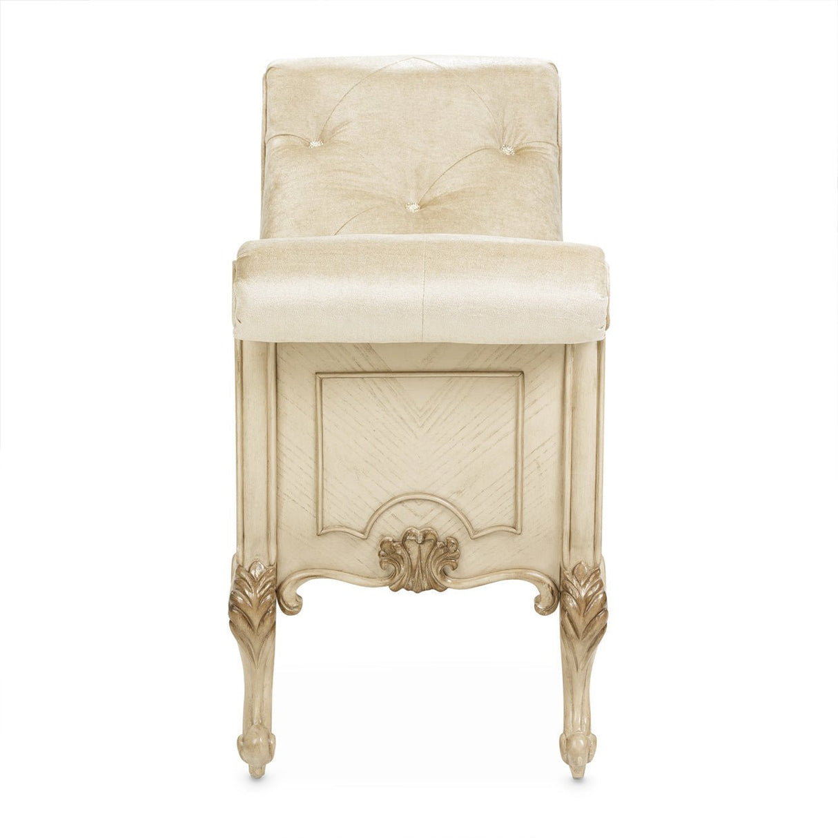 El banco de cama Platine De Royale sin almacenaje de AICO Furniture captura la esencia del diseño francés del siglo XVIII con una imponente silueta en forma de S y detalles de alta costura. Su estructura de madera tallada presenta un acabado en un delicado tono champán envejecido, que irradia encanto vintage y profundidad artesanal. Tapizado en radiante terciopelo con estampado metalizado y adornado con capitoné de cristal pavé, este banco ofrece glamour, comodidad y un estilo atemporal; perfecto a los pies de la cama, bajo una ventana o como un detalle independiente en cualquier espacio refinado.