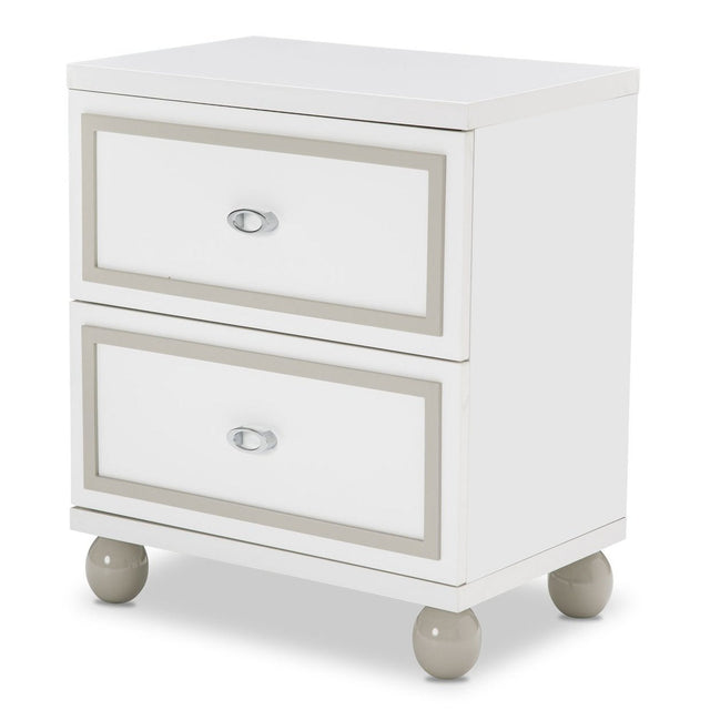 Mesita de noche Sky Tower en blanco nube con cajones forrados de terciopelo - AICO