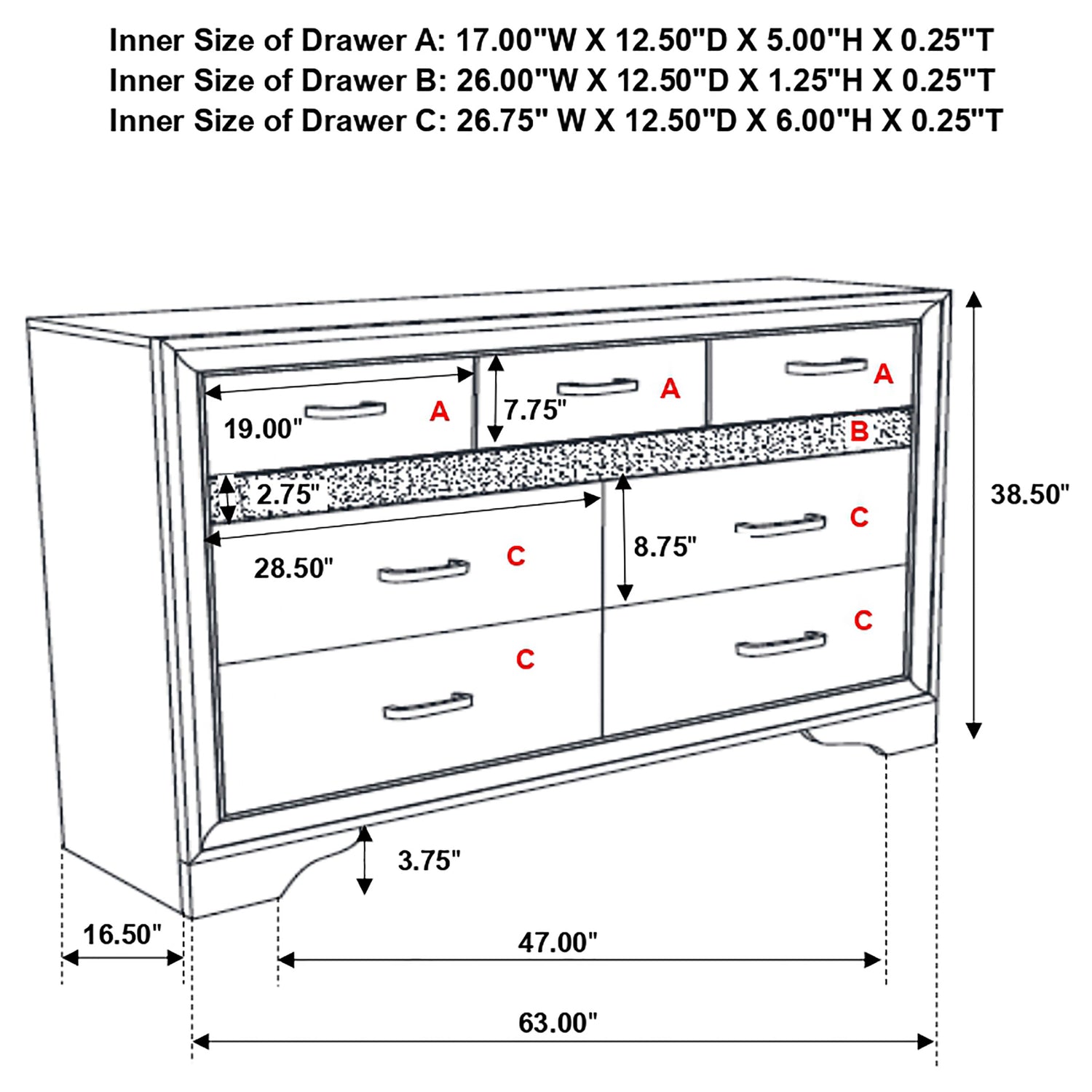 Elegante y ultrachic, este glamuroso juego de dormitorio de cinco piezas es lo último en lujo moderno. Incluye cama, mesita de noche, cómoda, espejo y cómoda, lo que te da todo lo necesario para completar tu dormitorio. La plataforma de cama, lista para usar con colchón, ofrece la ventaja adicional de espacio de almacenamiento en el pie de cama. La cómoda, la mesita de noche y la cómoda también están equipadas con amplios cajones para maximizar el espacio de almacenamiento. Las rayas brillantes y los detalles de pedrería añaden un toque brillante y elegante a este exquisito juego de dormitorio.