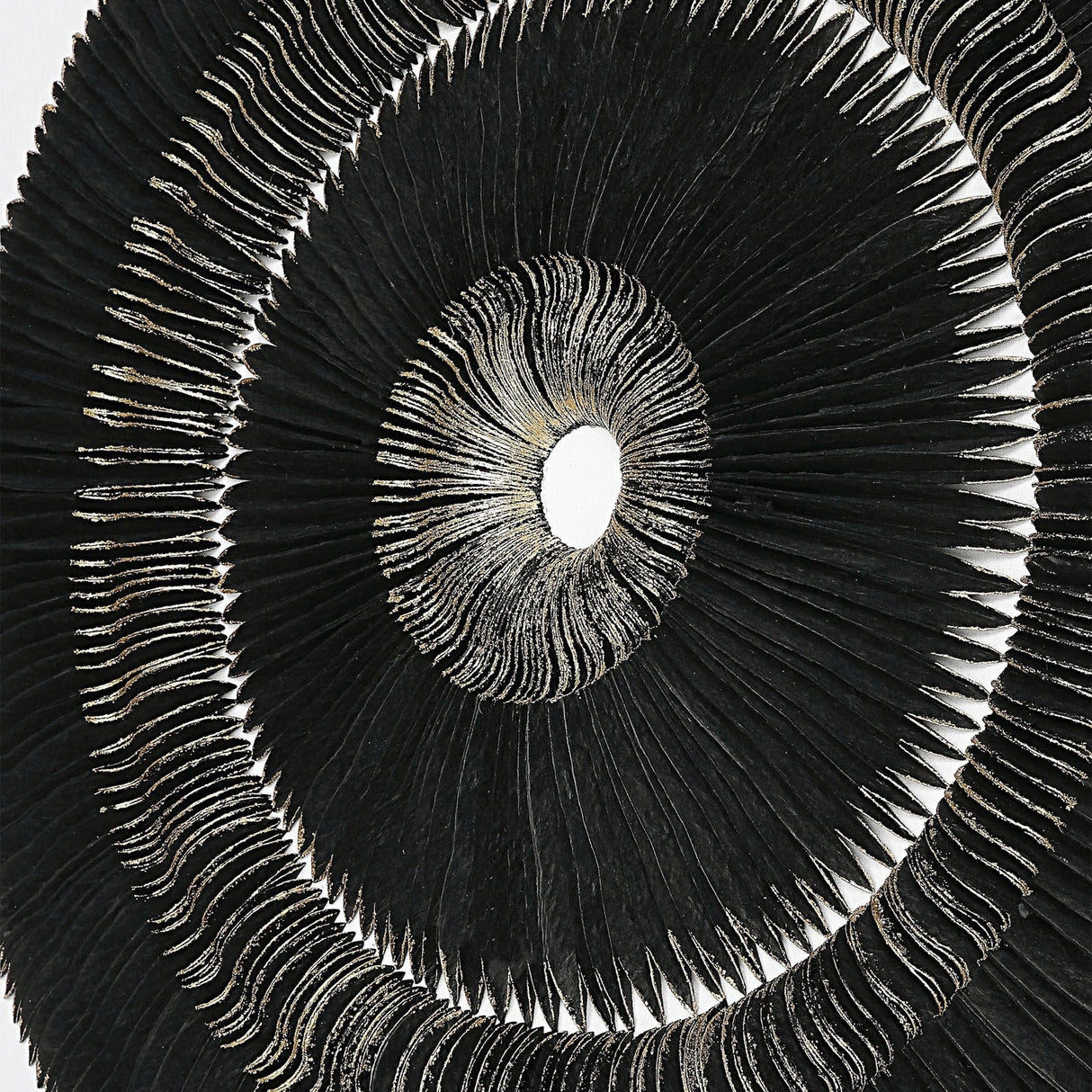- Esta decoración de pared está hecha a mano por artesanos expertos y presenta un llamativo medallón de pan de oro y negro.