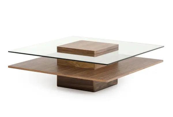 Mesa de centro moderna Modrest Clarion de nogal y vidrio Vgbble638E