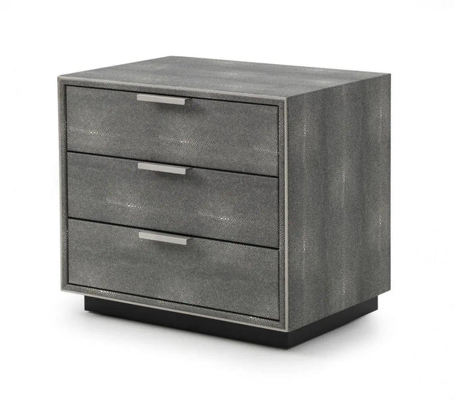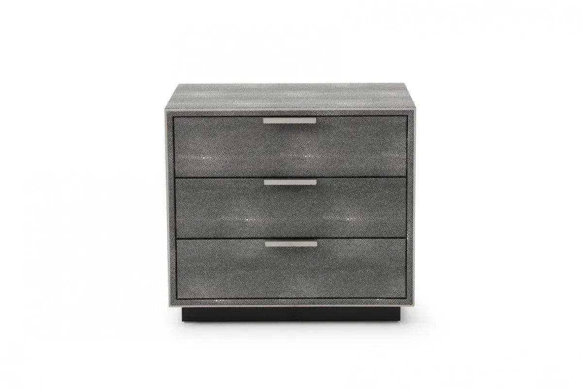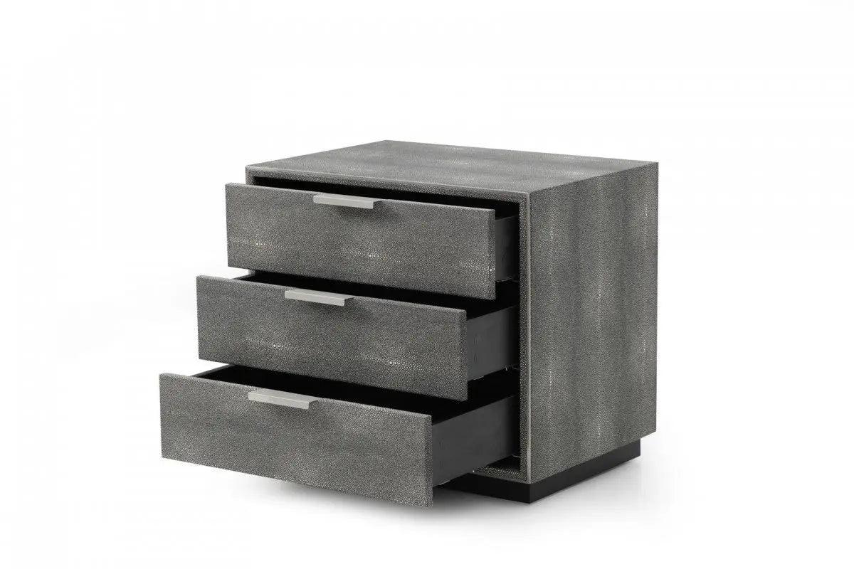 Modrest Dynasty - Mesita de noche moderna de piel de tiburón con tres cajones - VGVCN2108-3-GRY-NS | VIG