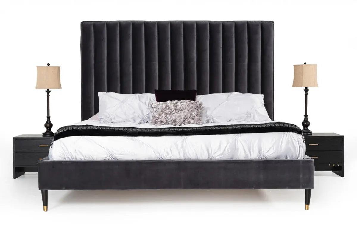 Modrest Hemlock - Cama moderna de terciopelo gris oscuro - VGKKB606-GRY | VIG