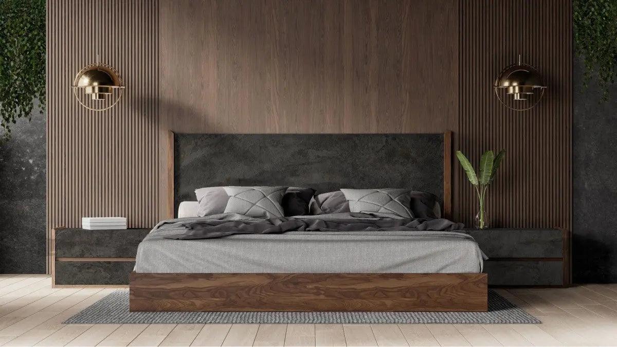 Cama moderna Nova Domus Rado en nogal y pizarra volcánica | VIG