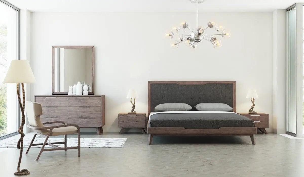 Cama Nova Domus Soria Mid-Century en gris y nogal - VGMABR-32-BED | VIG