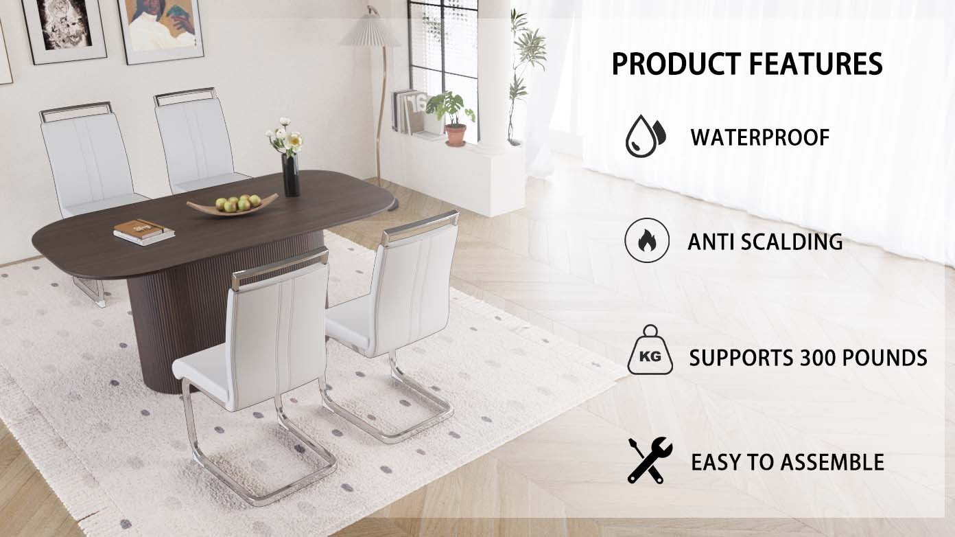- 2.5-piece dining table and chair set: A table that can accommodate 4-8 guests for gatherings and 4 ergonomically designed leather modern style armless dining chairs, creating a fashionable focus for you in the dining area.