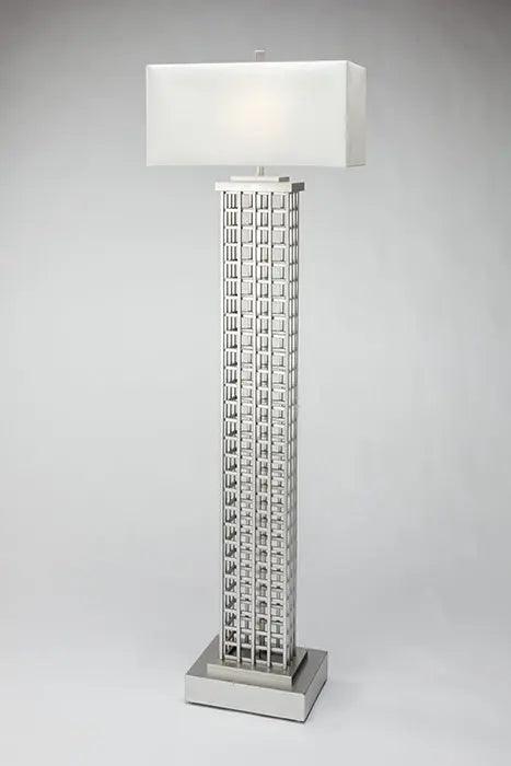Floor Lamp by Artmax is a beautiful floor lamp with an old world silver finish. This lamp is made of metal and wood, with a fabric shade, and would be a stunning addition to any room. This beautiful floor lamp is also handpainted and has a dimmer, making it perfect for any occasion.