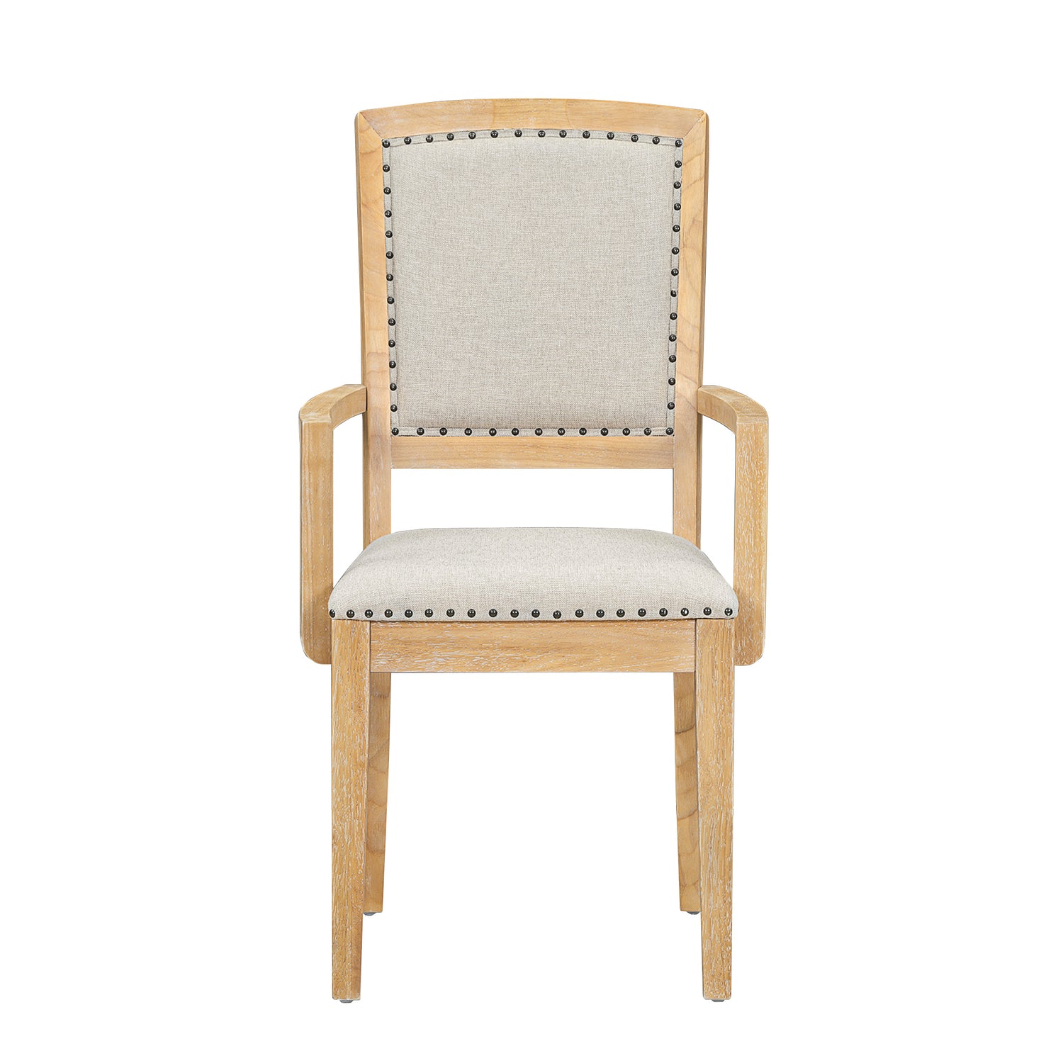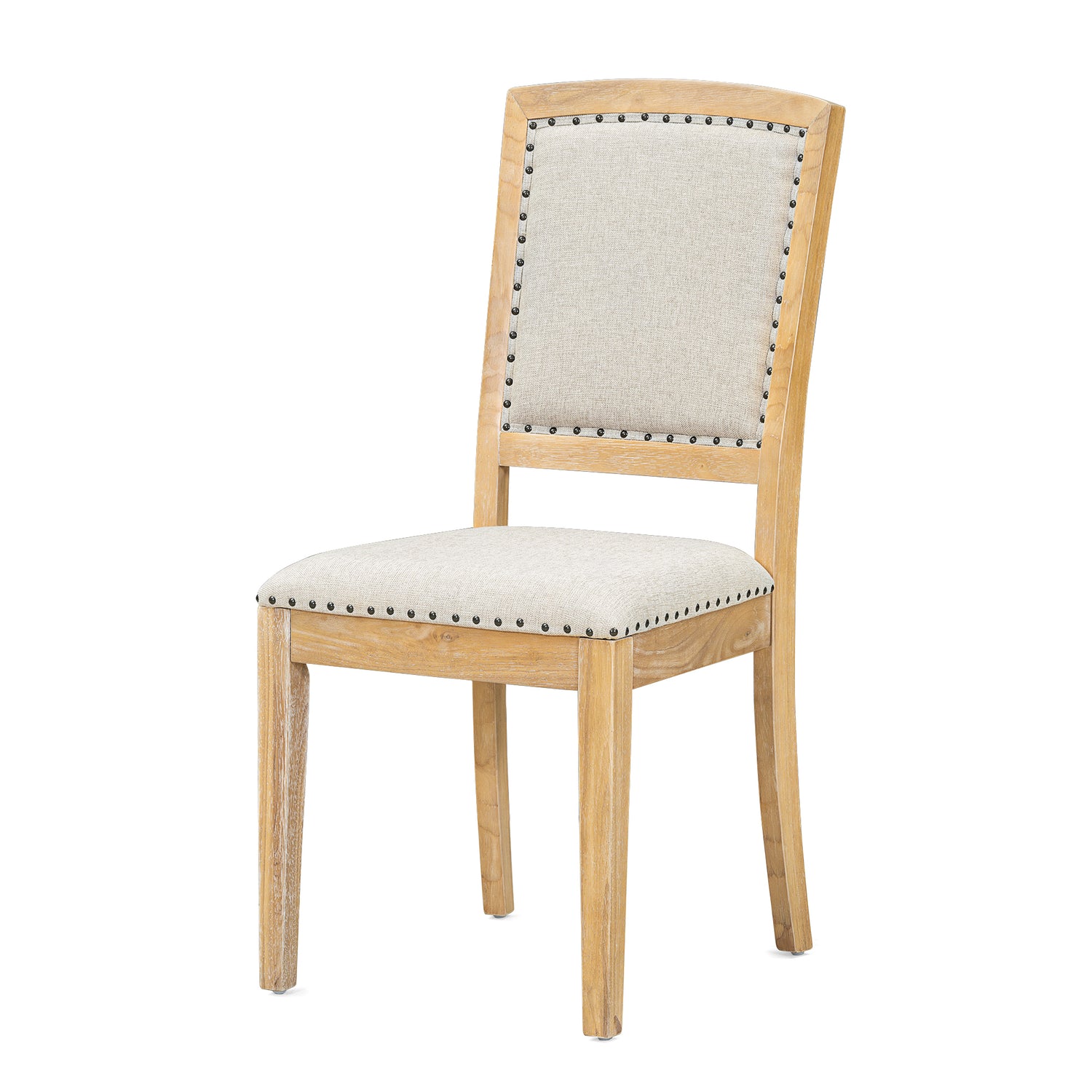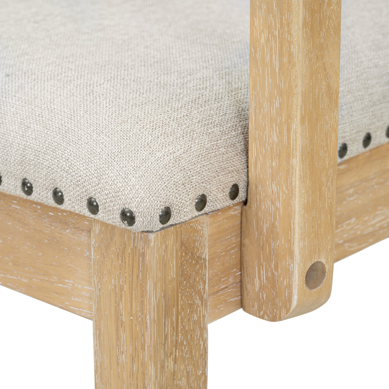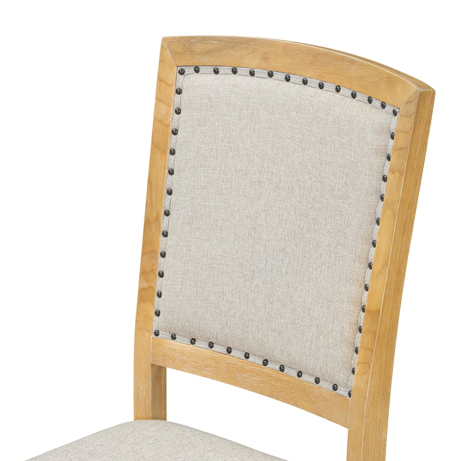 | Material | Tabletop: MDF+acacia wood veneer;Table frame: rubber wood; Chair Cushion:linen fabric+foam;Chair frame: rubber wood; Antique brass nail head trim |