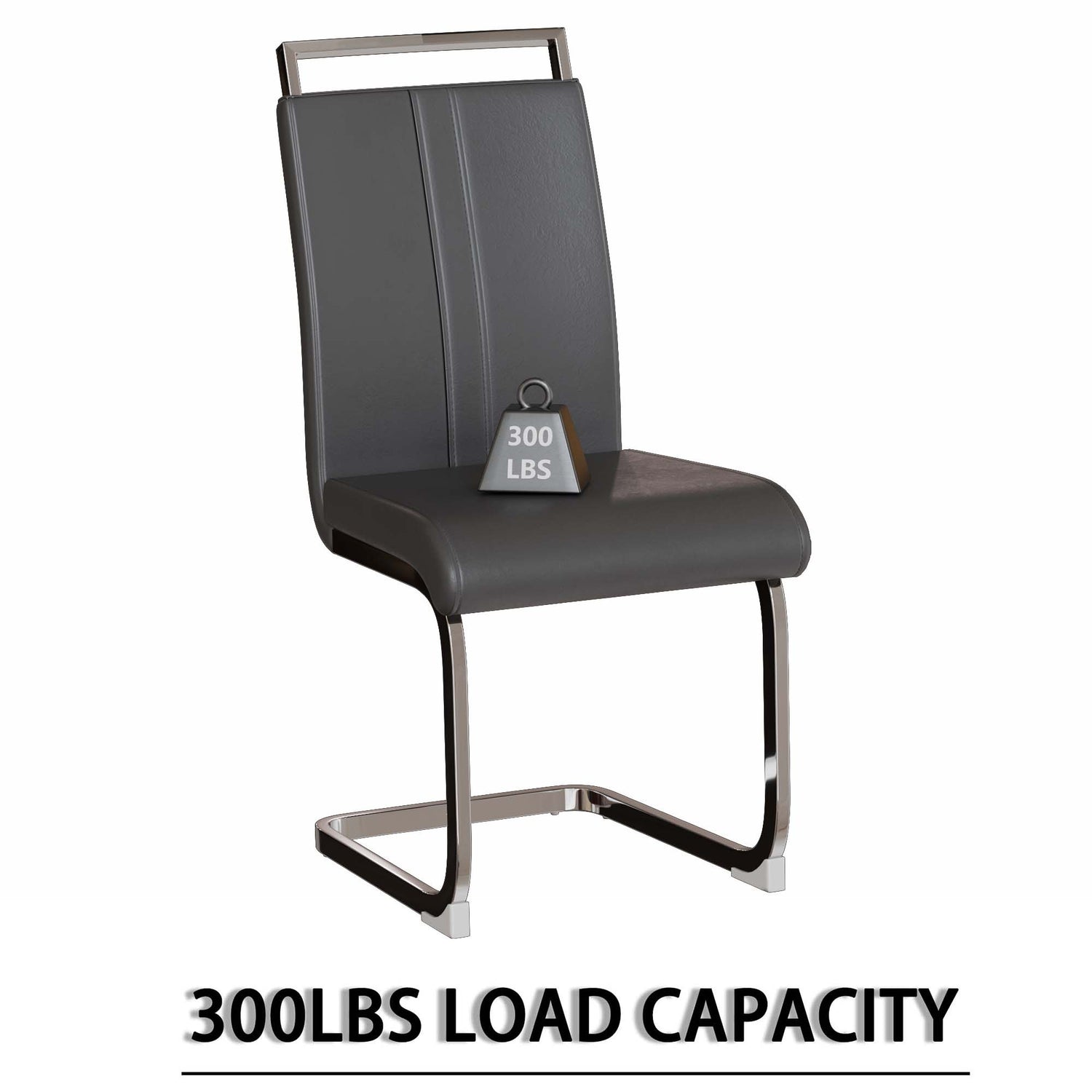 - 8.Durable and sturdy: The sturdy gray leather dining chair is equipped with a C-shaped silver plated base, creating a unique modern appearance. The bottom has scratch resistant plastic feet to prevent damage to the floor.