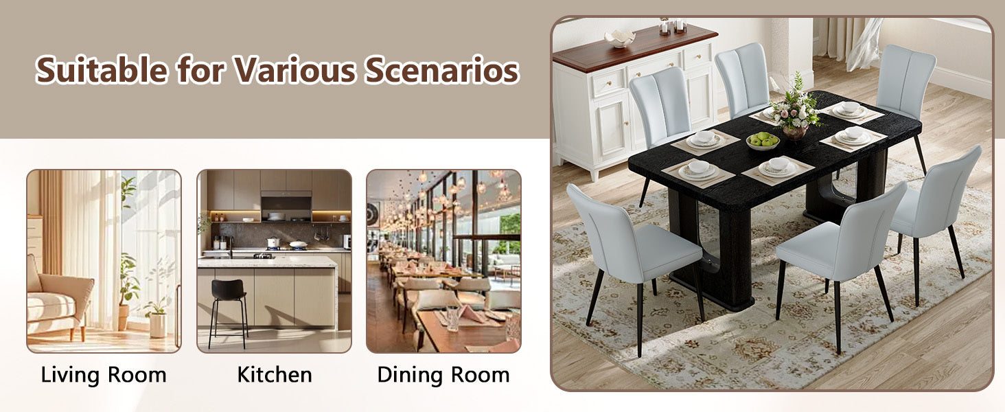 - PU Material for Comfort: The light gray chairs are made of PU material, with a vertical line design on the backrest that adds aesthetic detail while offering a soft and comfortable seating experience.
