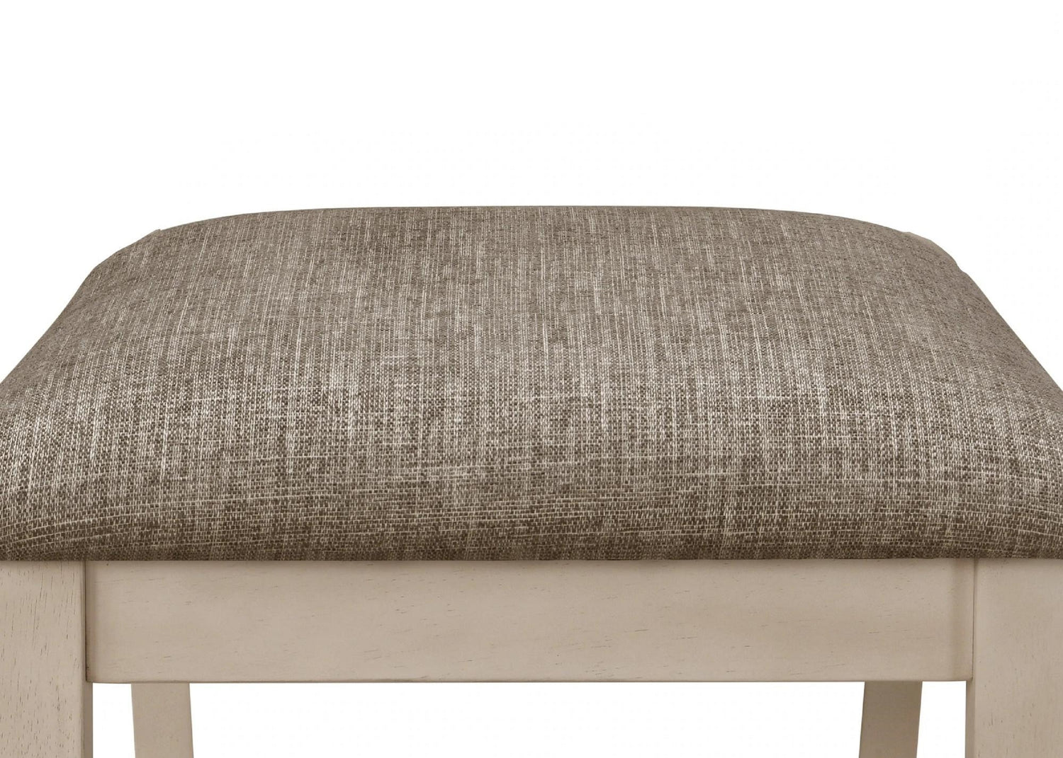 6pc Cottage Style Extendable Dining Table Set Chalk Gray Tow Tone Finish Upholstered Chair Bench Dining Room Wooden Furniture Two Self-Storing Refectory Leaves Solid Wood is available