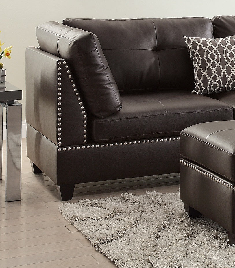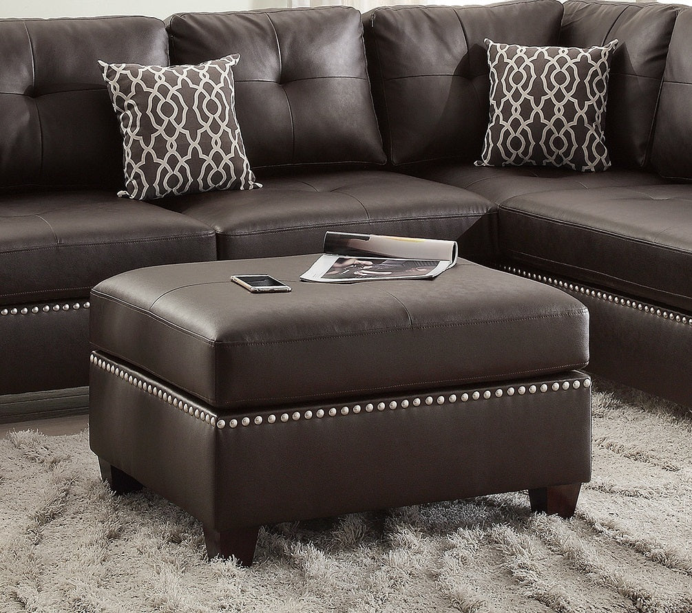 3-pcs Sectional Sofa Espresso Bonded Leather Cushion Sofa Chaise Ottoman Reversible Couch Pillows