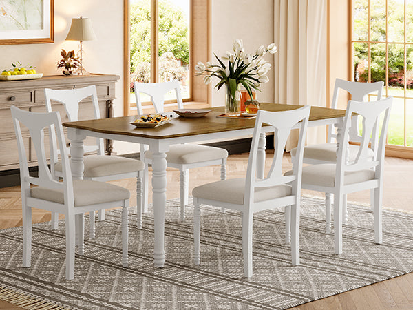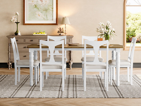 - COUNTRY FARMHOUSE STYLE: This well-designed dining table and chair set is perfect for a cozy and rustic country farmhouse style, designed for family and friends to gather together.The 60-inch standard length table top easily accommodates 6 people and creates a joyful dining atmosphere