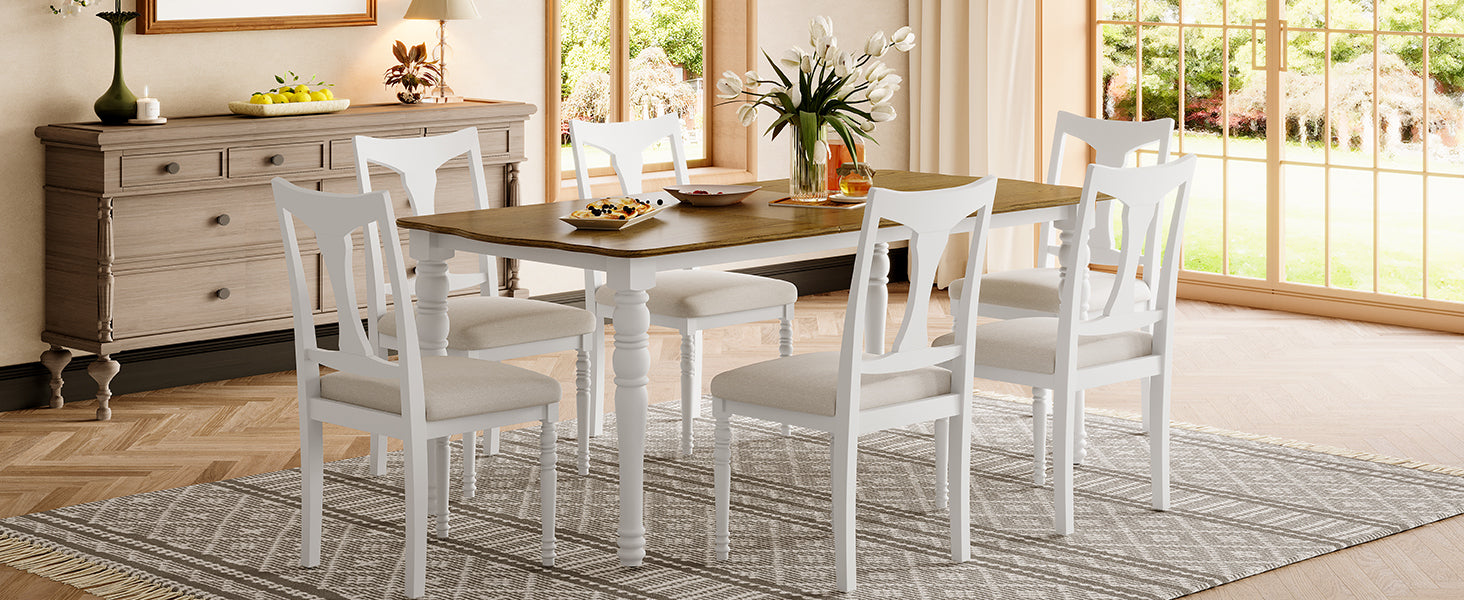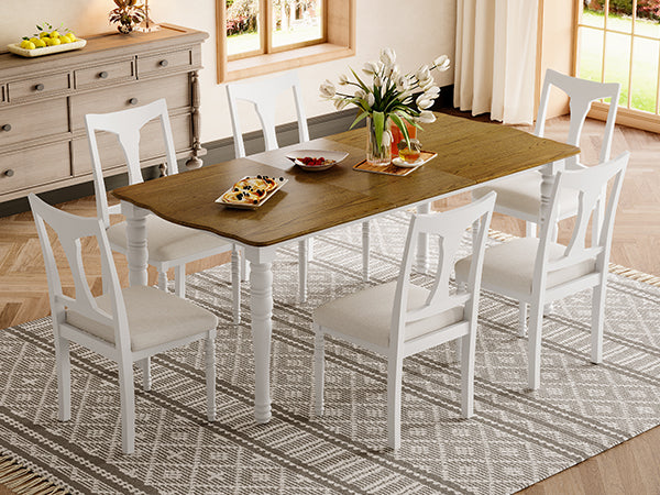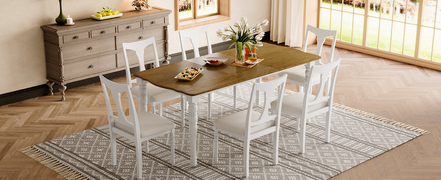 7-Piece Dining Table Set, 60inch to 78inch Extendable Wood Dining Table with Removable Leaf, Kitchen Table Set with 6 Upholstered Side Chair, Dining Table Set for 6