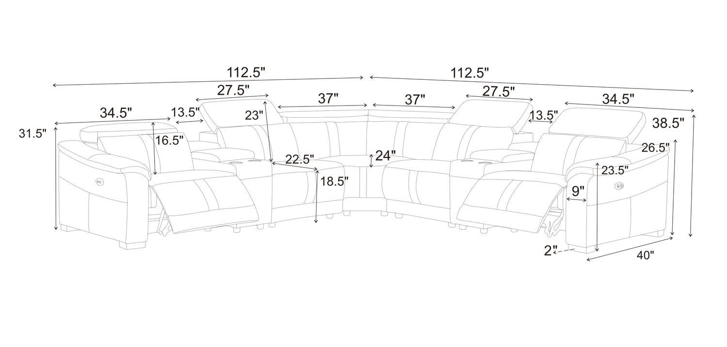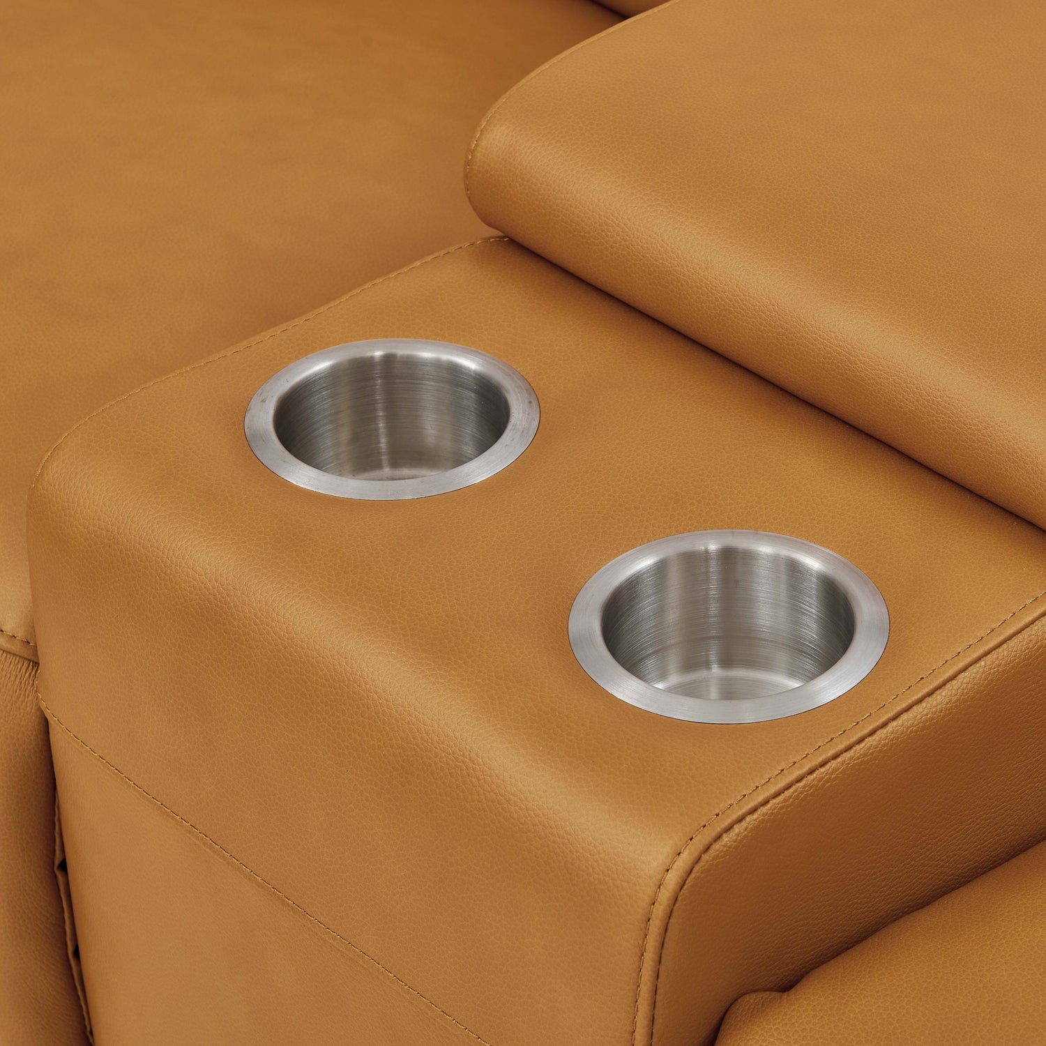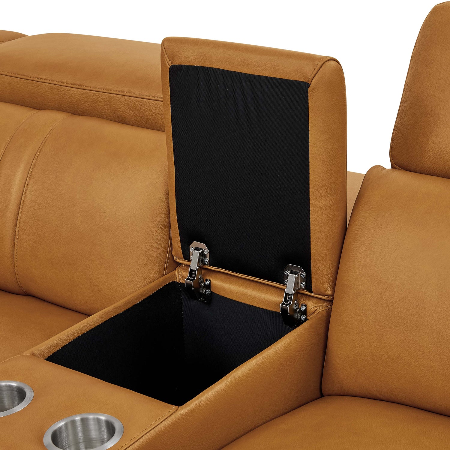 Leather Match Modular Sectional with Recliner Seat and Adjustable Headrest and Storage Console with Cup Holders