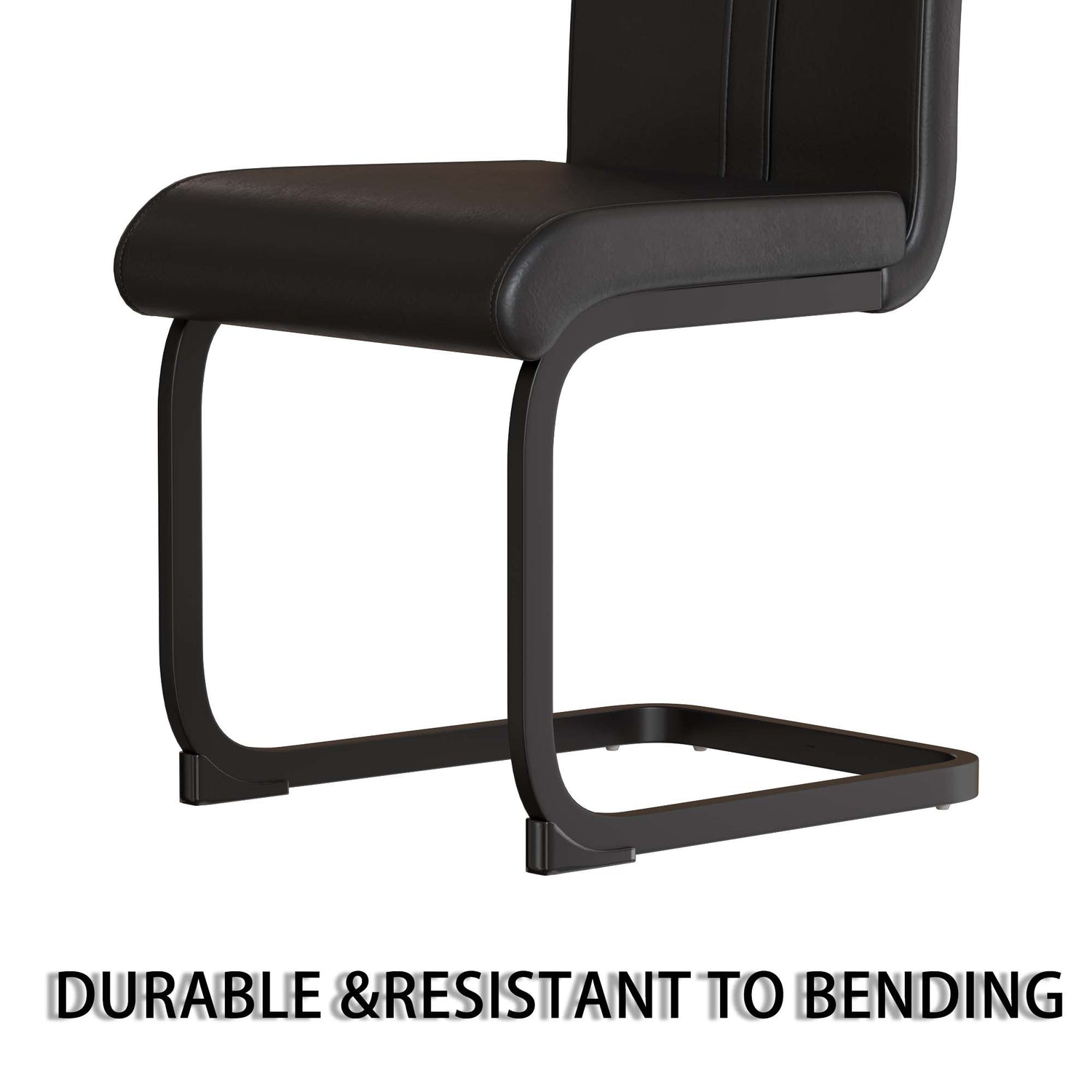 - 8.Durable and sturdy: The sturdy black leather dining chair is equipped with a C-shaped black base, creating a unique modern appearance. The bottom has scratch resistant plastic feet to prevent damage to the floor.