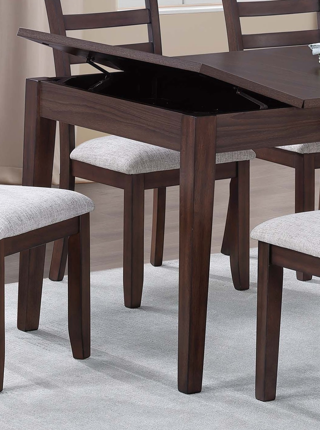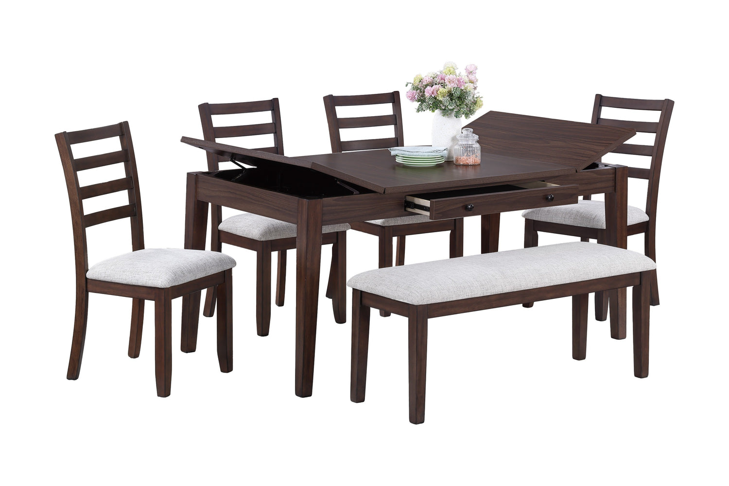 Contemporary Style 6pc Dining Set Walnut Dining Table w Storage Ladder Back 4x Side Chairs Bench Dining Room