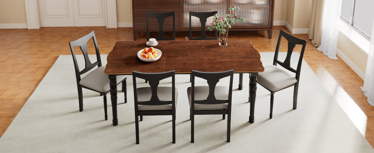 7-Piece Dining Table Set, 60inch to 78inch Extendable Wood Dining Table with Removable Leaf, Kitchen Table Set with 6 Upholstered Side Chair, Dining Table Set for 6 is available