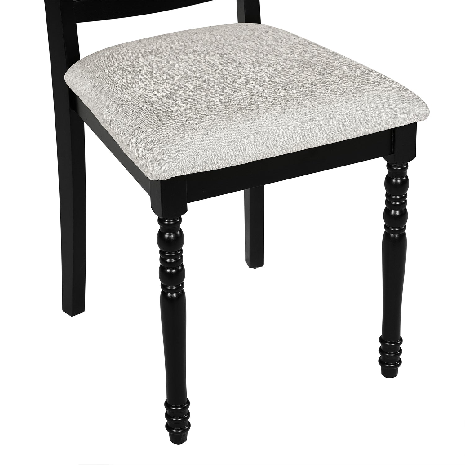 - 2 Colors: 1. Classic brown and black model, the tabletop presents warm brown oak texture, with calm black table and chair legs, beige cushion embellishment, creating a traditional warm country style. 2. Original white model, the tabletop presents natural oak texture, with pure white table and chair legs, beige cushion adds a sense of brightness, to create a fresh, modern and full of rustic atmosphere of the dining space. The whole dining space is full of fresh, modern and rustic flavor
