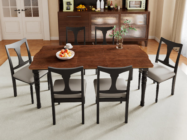 7-Piece Dining Table Set, 60inch to 78inch Extendable Wood Dining Table with Removable Leaf, Kitchen Table Set with 6 Upholstered Side Chair, Dining Table Set for 6