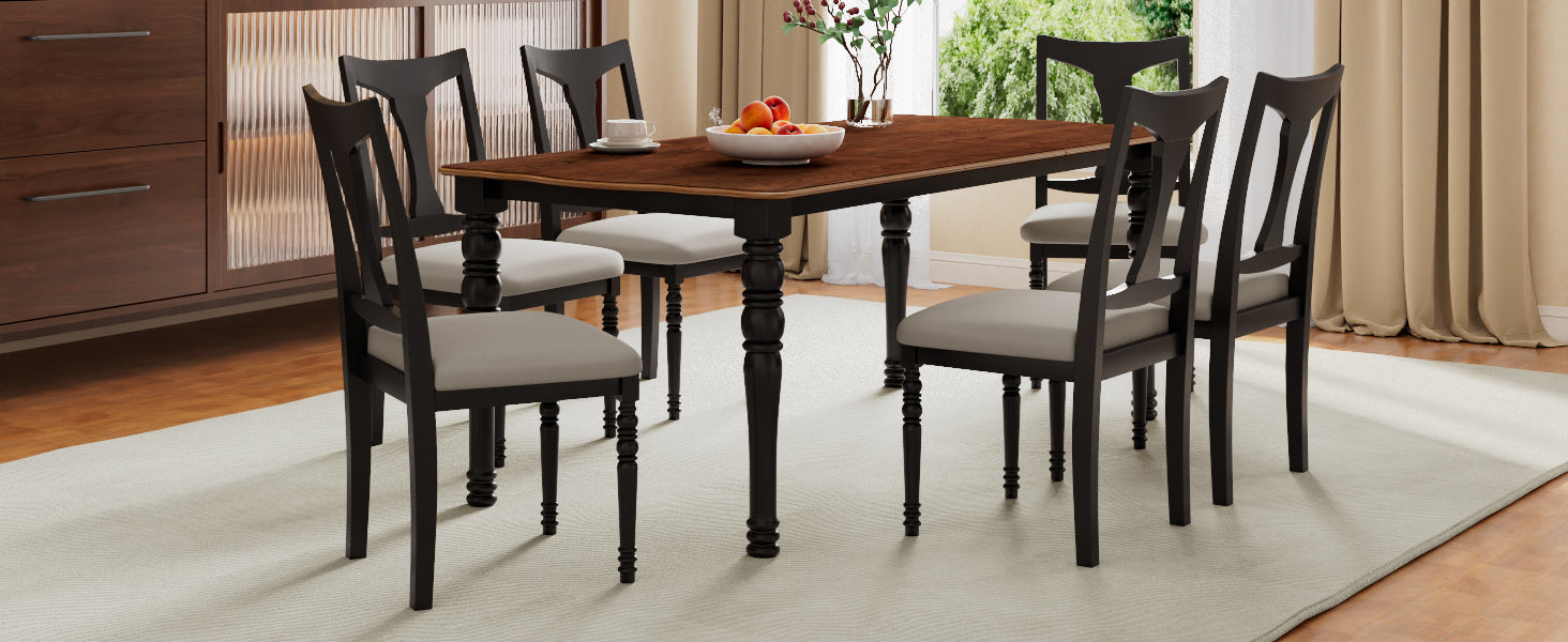 - COUNTRY FARMHOUSE STYLE: This well-designed dining table and chair set is perfect for a cozy and rustic country farmhouse style, designed for family and friends to gather together.The 60-inch standard length table top easily accommodates 6 people and creates a joyful dining atmosphere