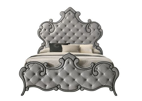 Acme - Perine EK Bed BD01061EK Gray Velvet