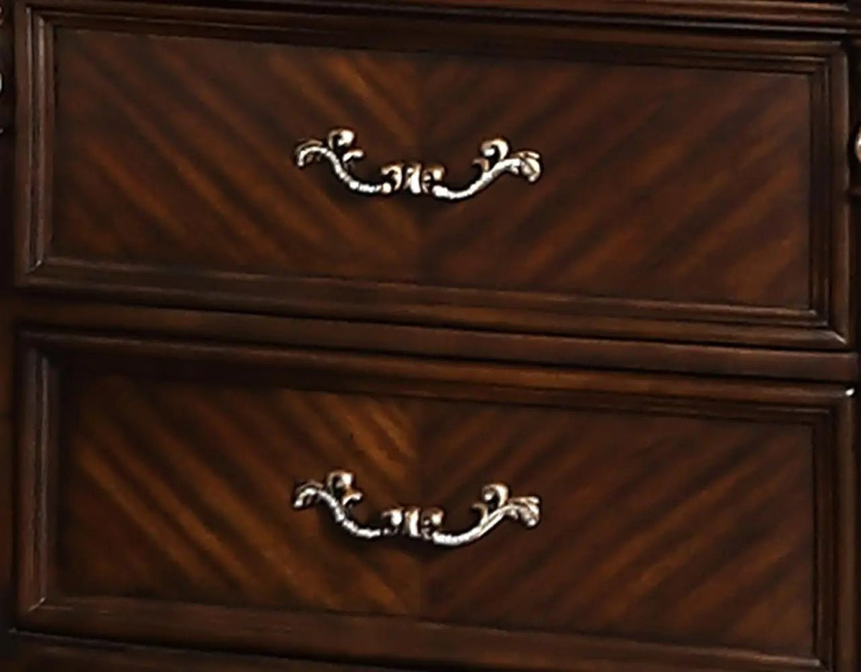 Aspen Traditional Style Nightstand in Cherry finish Wood, 31 x 34 x 20, 84lbs. Cosmos Furniture's Aspen traditional style Nightstand in cherry finish wood is the perfect accent to create the royal statement for your bedroom. This three (3) drawer Nightstand is crafted in wood with Ash veneer and was inspired by old European design. It has two (2) deep bottom drawers and one (1) top drawers for your jewelry or accessories. The intricate detailed carvings, looping and a gorgeous hand brushed Gold finish on the Nightstand accentuates the copper with crystal finished accented hardware on the drawers. The wood box deep drawers have dovetail construction with full extension glides. Also, the bottom drawer is dust proof. Matching other bedroom set pieces are sold separately to complete the entire look of your excellent taste. - Traditional Style Nightstand - In Cherry finish Wood - European Influenced Antique look - Three (3) Drawers - Delicate Sleek Intricated Carving - Hand applied Gold brushed finish on the carvings - Full extension deep wood box Drawers glides - Brushed nickel round pulls with Faux crystal - Dovetail construction drawers - Bottom Drawer dust proof - Each Nightstand sold separately - Matching bedroom pieces sold separately