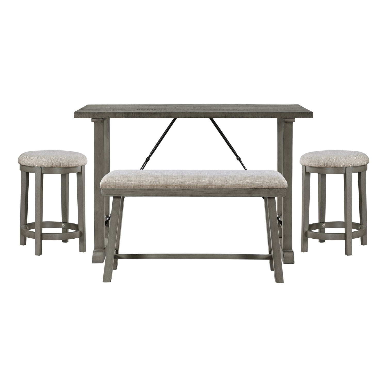4PC Counter Height Dining Set Light Gray Finish Counter Height Table with Bench 2x Stools Foam Cushioned Seats Kitchen Dining Breakfast Furniture is available