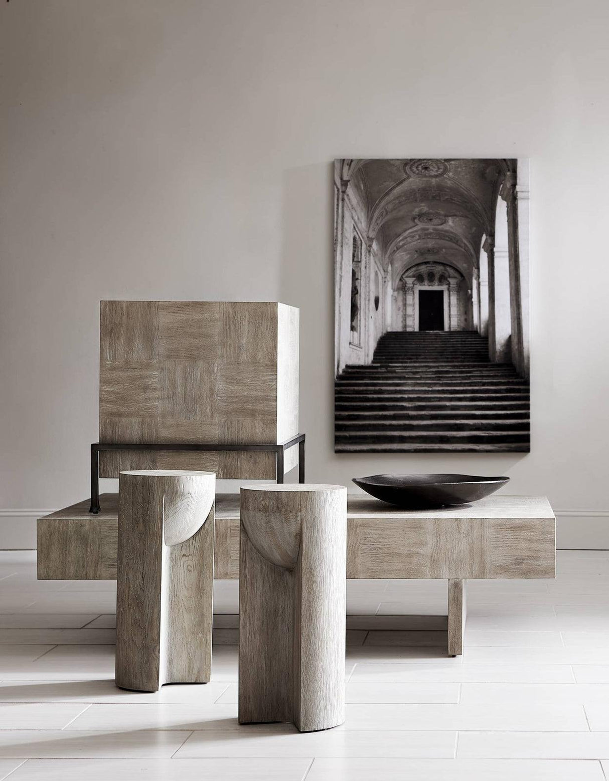 Bernhardt unveils the Fairgrove Cocktail Table, part of the distinctive Bernhardt Living collection. With its geometric simplicity and natural texture, this rectangular cocktail table showcases a sandblasted oak surface arranged in alternating grain patterns. Clean, architectural lines and substantial oak slab legs create a grounded yet elevated presence in any contemporary space.