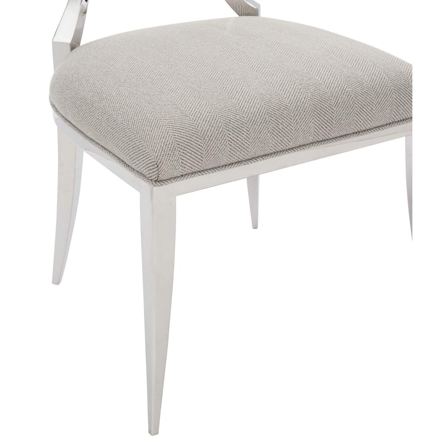 - A comfortable upholstered seat pairs elegantly with the sleek metal.