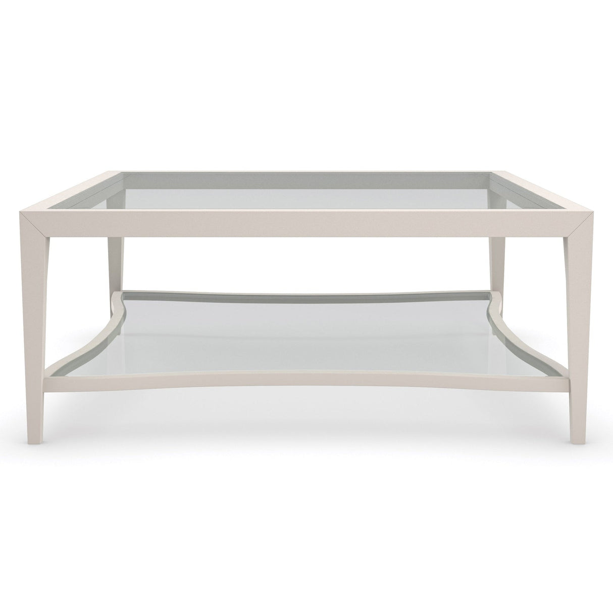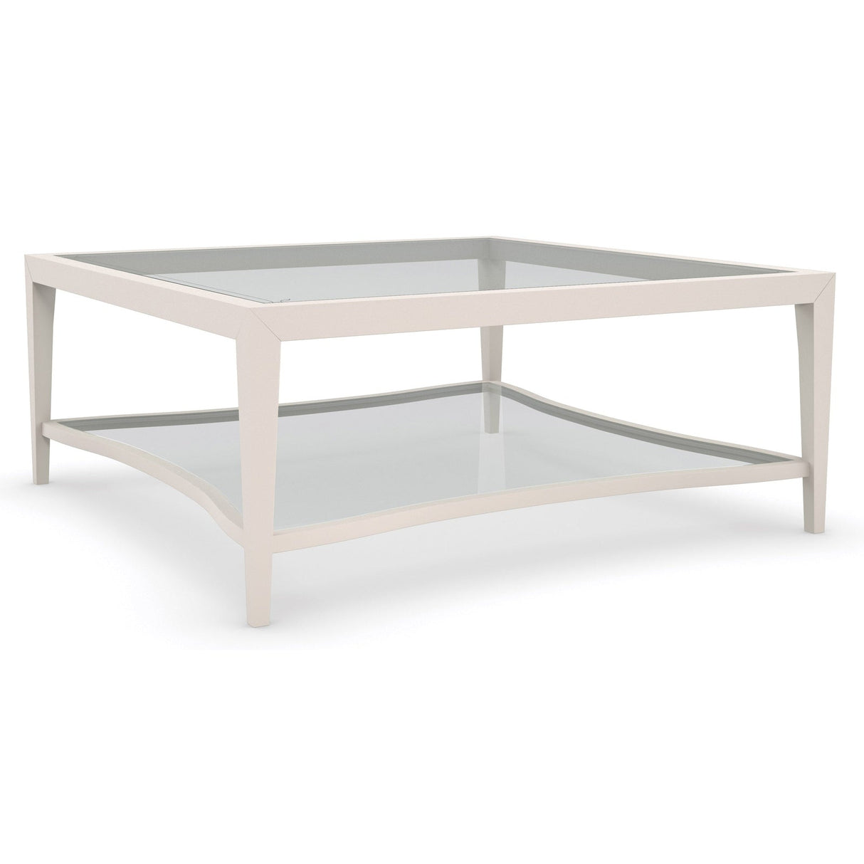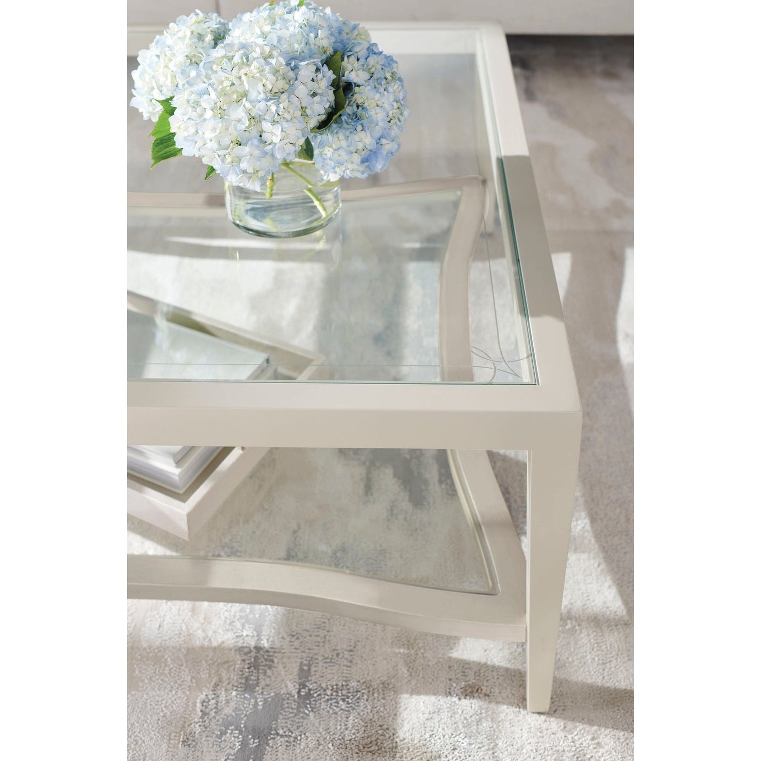 - Bottom shelf in Matte Pearl with lay on glass top.