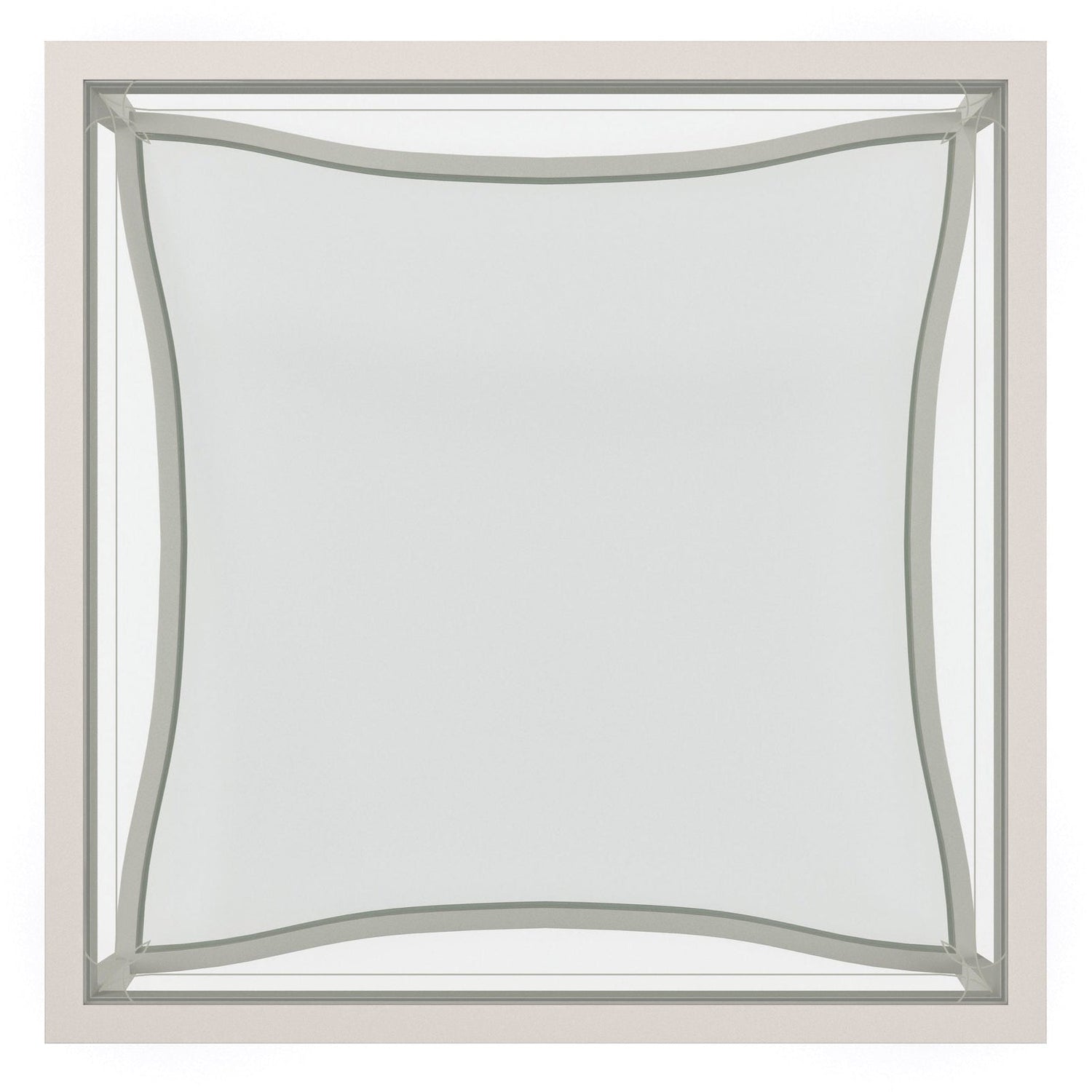 - Clear Glass top with screen-printed pinstriping on bottom in Soft Silver Paint.