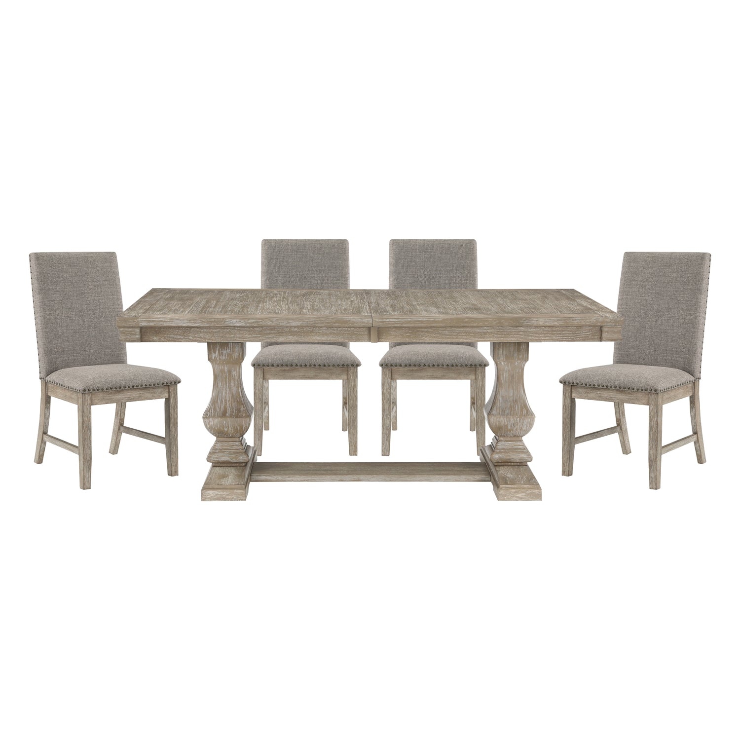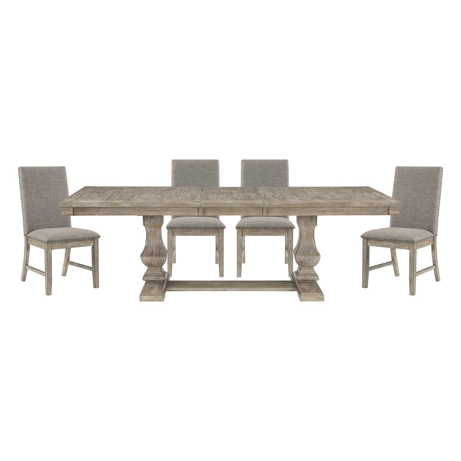Traditional Style 5pc Dining Set Table with Extension Leaf and 4x Side Chairs Brownish Gray Finish Wooden Dining Kitchen Furniture