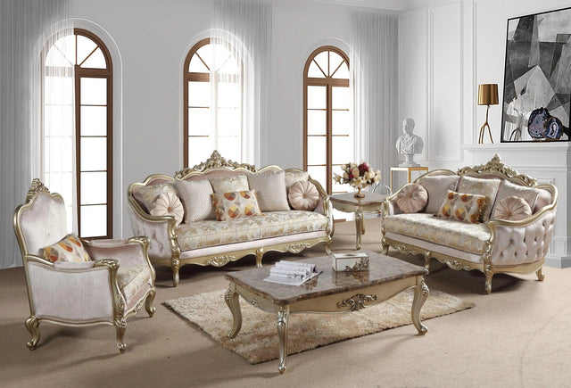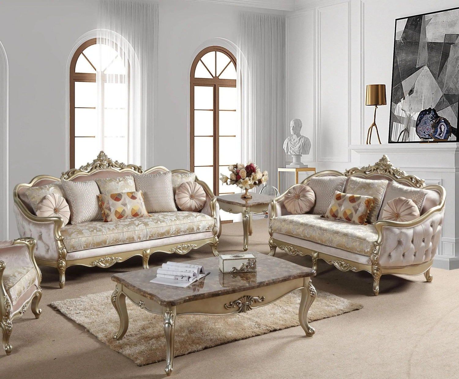 Diana Traditional Sofa And Loveseat In Champagne Wood Finish | Cosmos