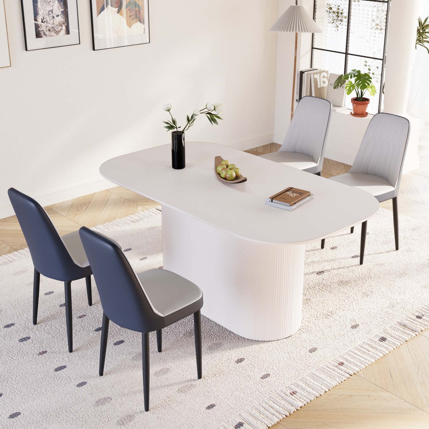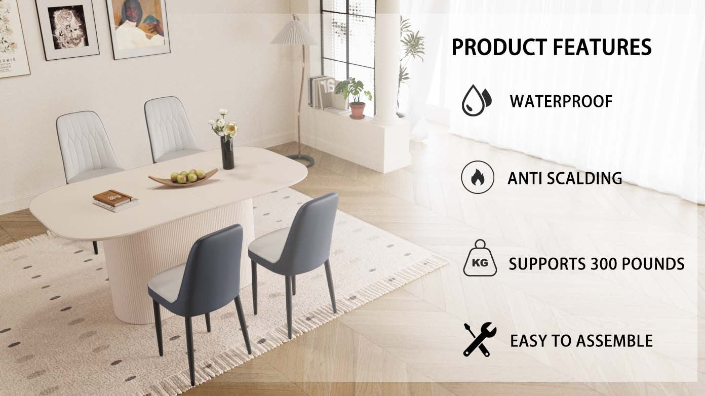 - 8.5 sets of tables and chairs: a table that can accommodate 4-8 guests for gatherings and 4 ergonomic artificial leather modern luxury style dining chairs, creating a fashionable focus for you in the dining area.