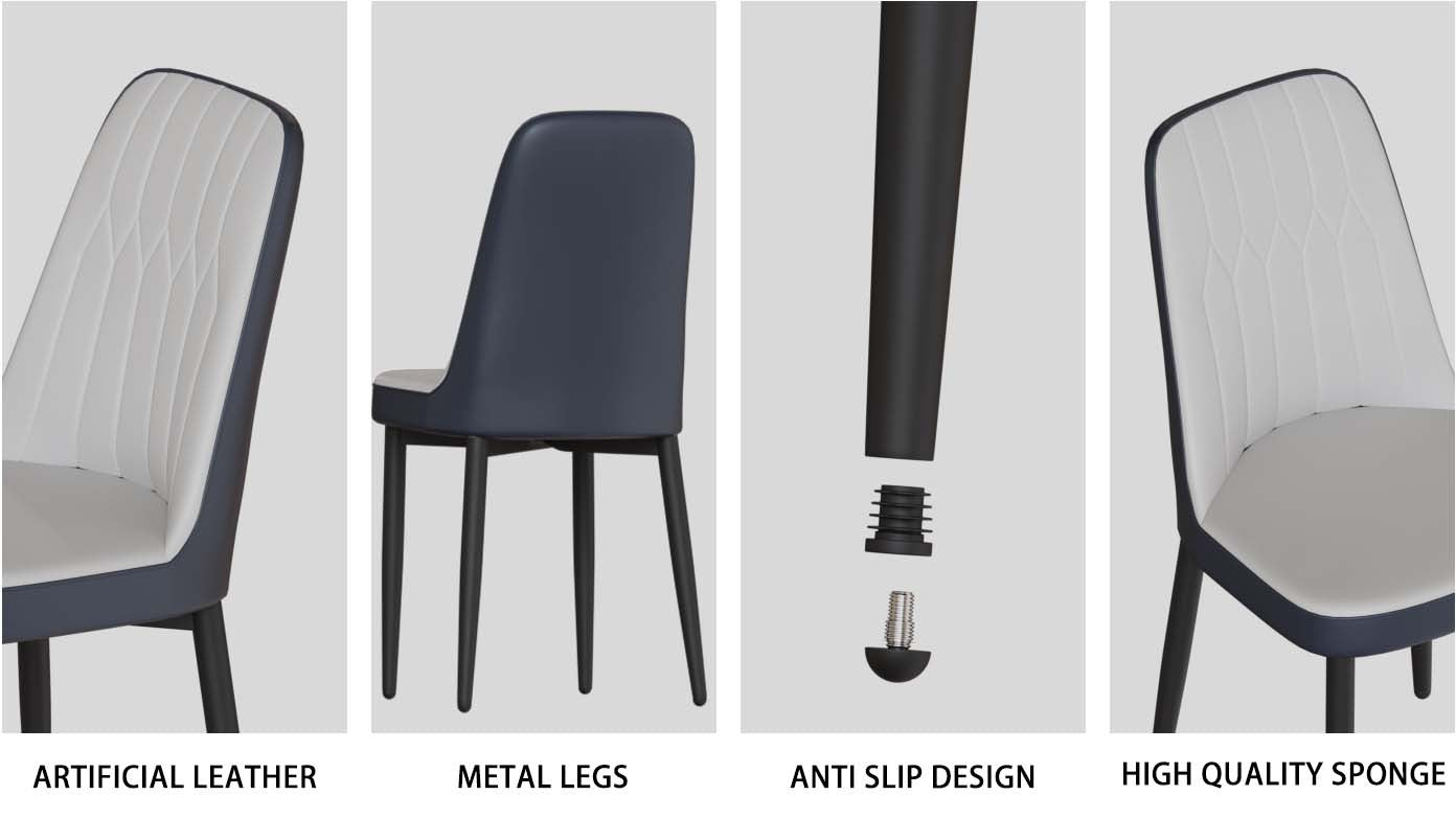 - 7.Ergonomic design: This dining chair adopts ergonomic design, with smooth lines, simple and fashionable. It can not only easily blend into various occasions, but also bring the ultimate comfort experience during dining. The height and tilt angle of the restaurant chairs have been carefully considered to provide optimal back support, effectively reducing discomfort even when sitting for long periods of time.
