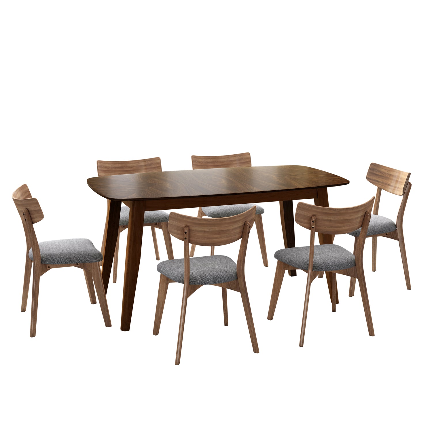 7 - Piece Dining Set,Mid-Century Walnut Finished Frame Upholstered Dining Chairs (Set of 6) (Dark Grey) +Wood Dining Table (Walnut) is available