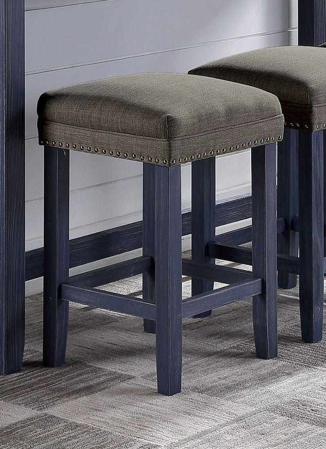 4pc Dining Table Set 1x Table 3x Stools Padded Seat Nailhead Trim USB Port And Power Outlet Antique Blue And Gray Finish is available