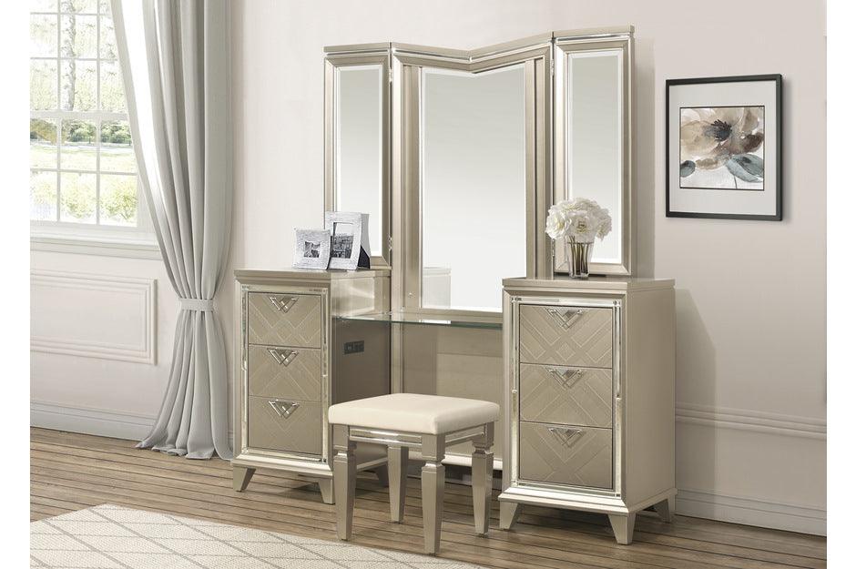 Homelegance - Bijou Vanity Dresser with Mirror and Stool in Champagne - 1522-15-14WF