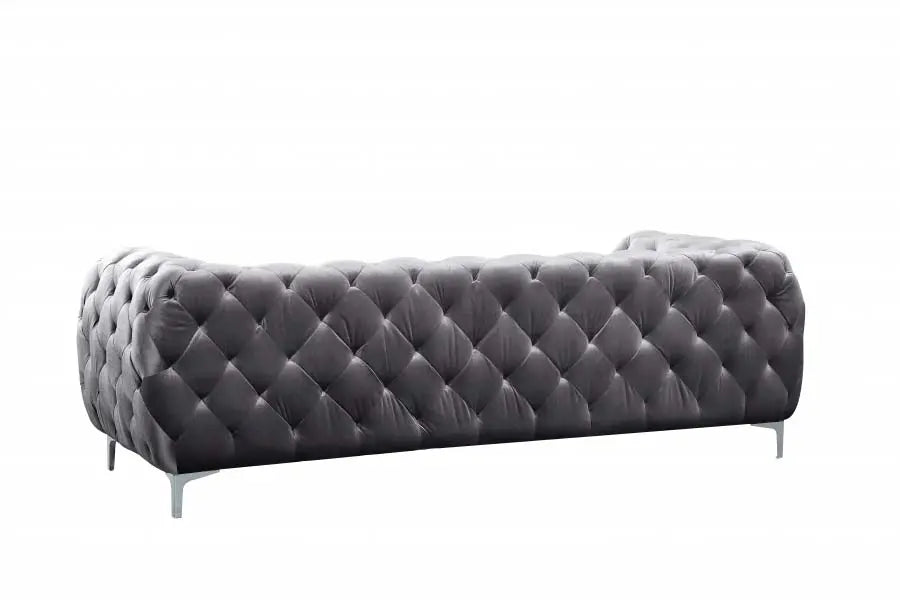 Elegant and eye-catching, the stunning Mercer Living Room from Meridian Furniture is the perfect addition to any space. Rich Velvet covers the plush, comfortable seat, padded with high-density foam and modern tufted design. Strength and beauty is guaranteed with a solid wood frame and chrome legs.